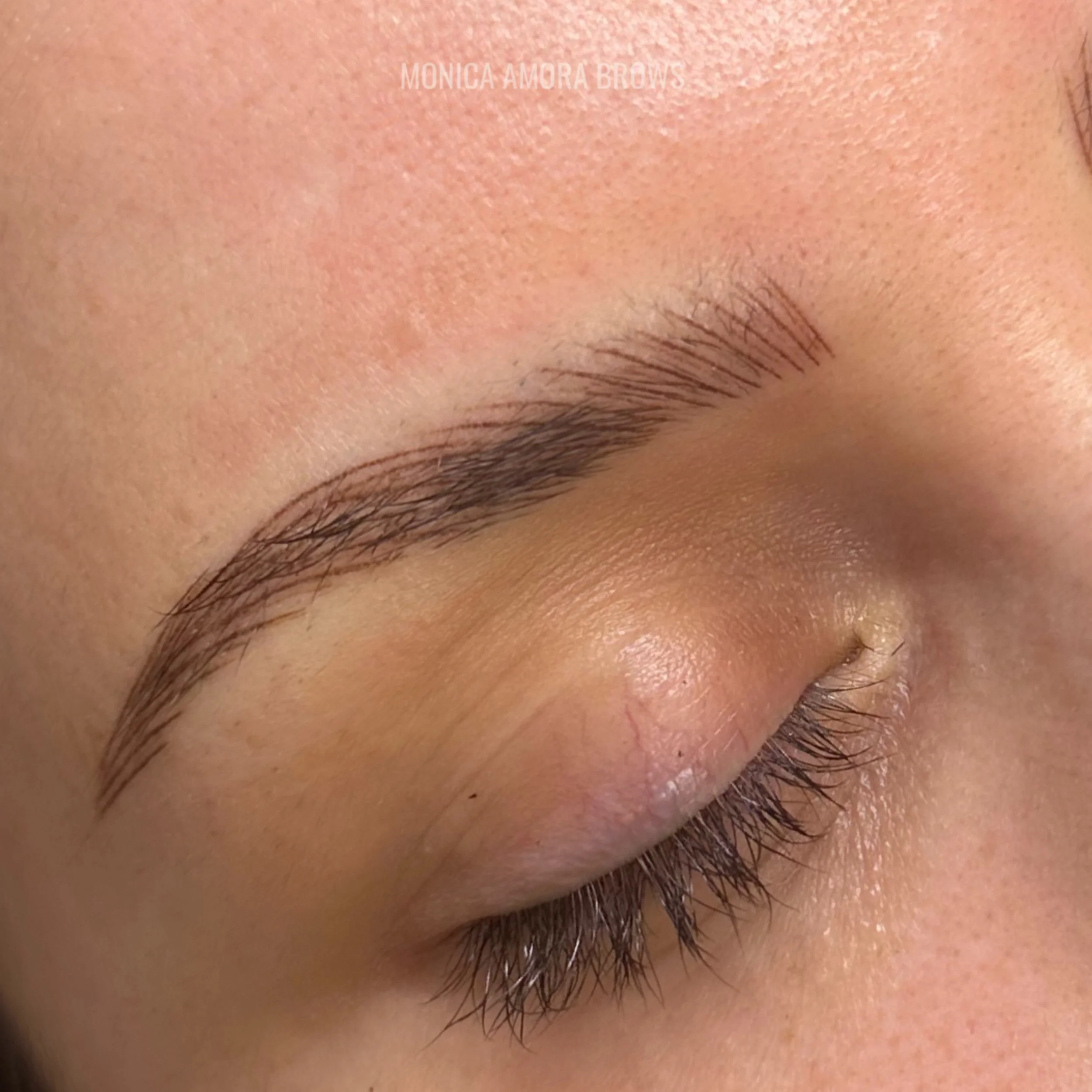 The most natural option. Created with ultra-fine, machine-crafted hair strokes for soft, realistic fullness without a makeup look. Ideal if you want subtle enhancement that blends seamlessly with your natural brow hair and heals beautifully.